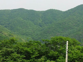 Okay lastly we had a Teacher's retreat this weekend. We played games and had food and alcohol. I didn't drink because I don't really like soju or beer and secondly and I am sick. We ate a ton of ramen, tol (Korean pancake with veggies) and watermelon for lunch and for dinner we had Korean bbq!!! I love Korean bbq!!! Meat can be pretty expensive. Of course we had rice, red pepper paste, kimchi, garlic, peppers, and lettuce. For dessert we had more watermelon. Fruits are really expensive here. Anyways it was in the mountains and here is the view and for the added bonus, since Kevin passed out at like 6pm, Haris wore Kevin's.... I'll just let you see the pictures. haha